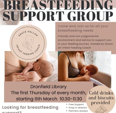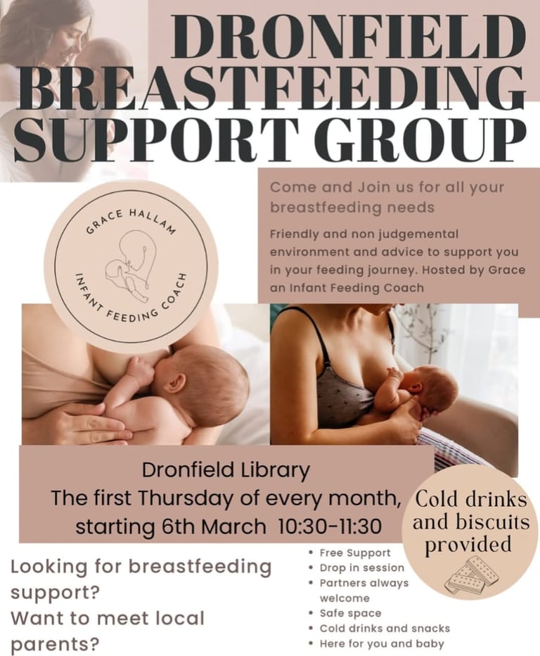 Informal Breastfeeding and sling/babywearing support at Dronfield library 1st Thursday of each month 10.30-11.30. Next sessions; Thursday 4th September, Thursday 2nd October